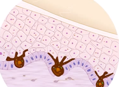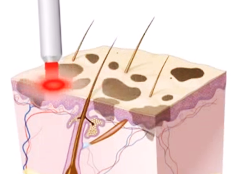미세 레이저를 이용하여 표피층의 멜라닌 세포를 파괴합니다.